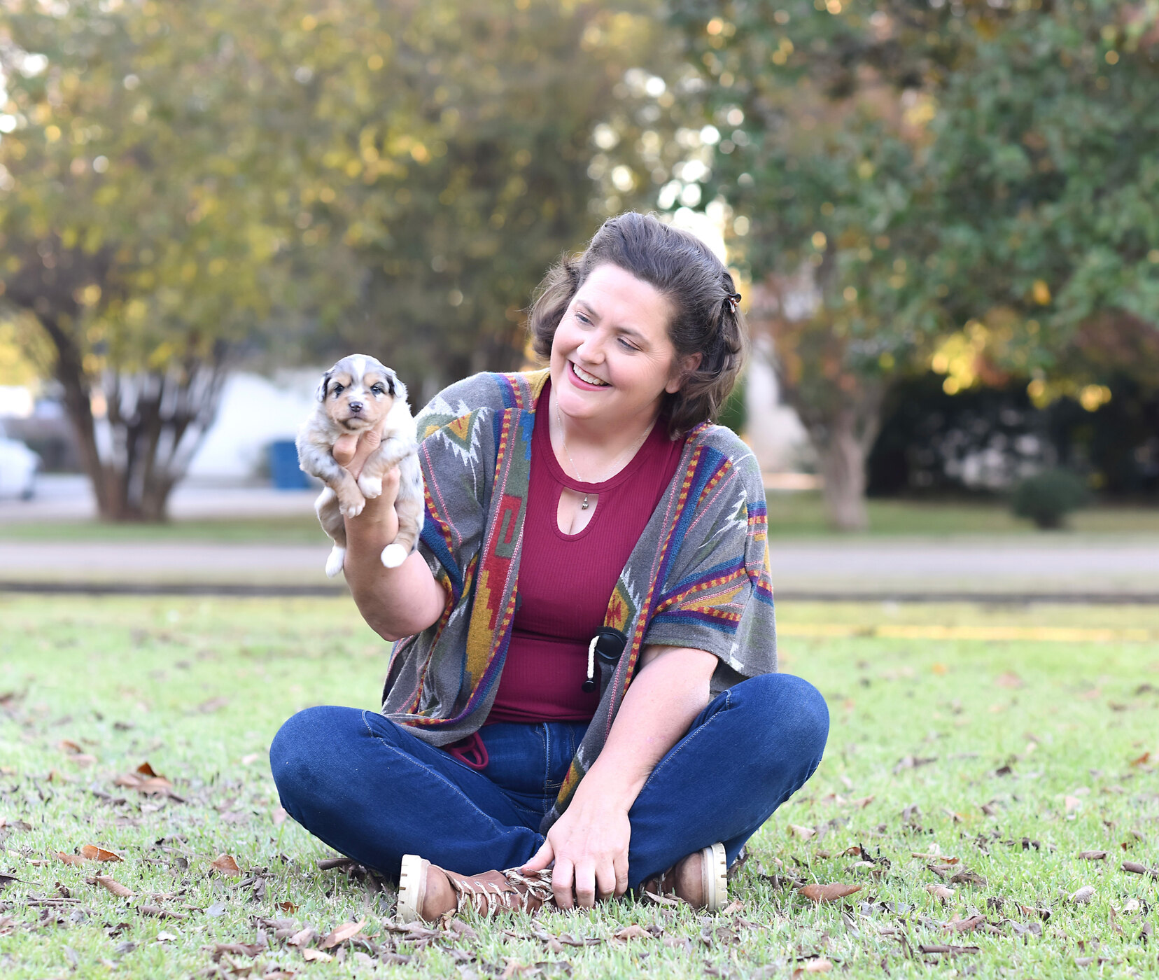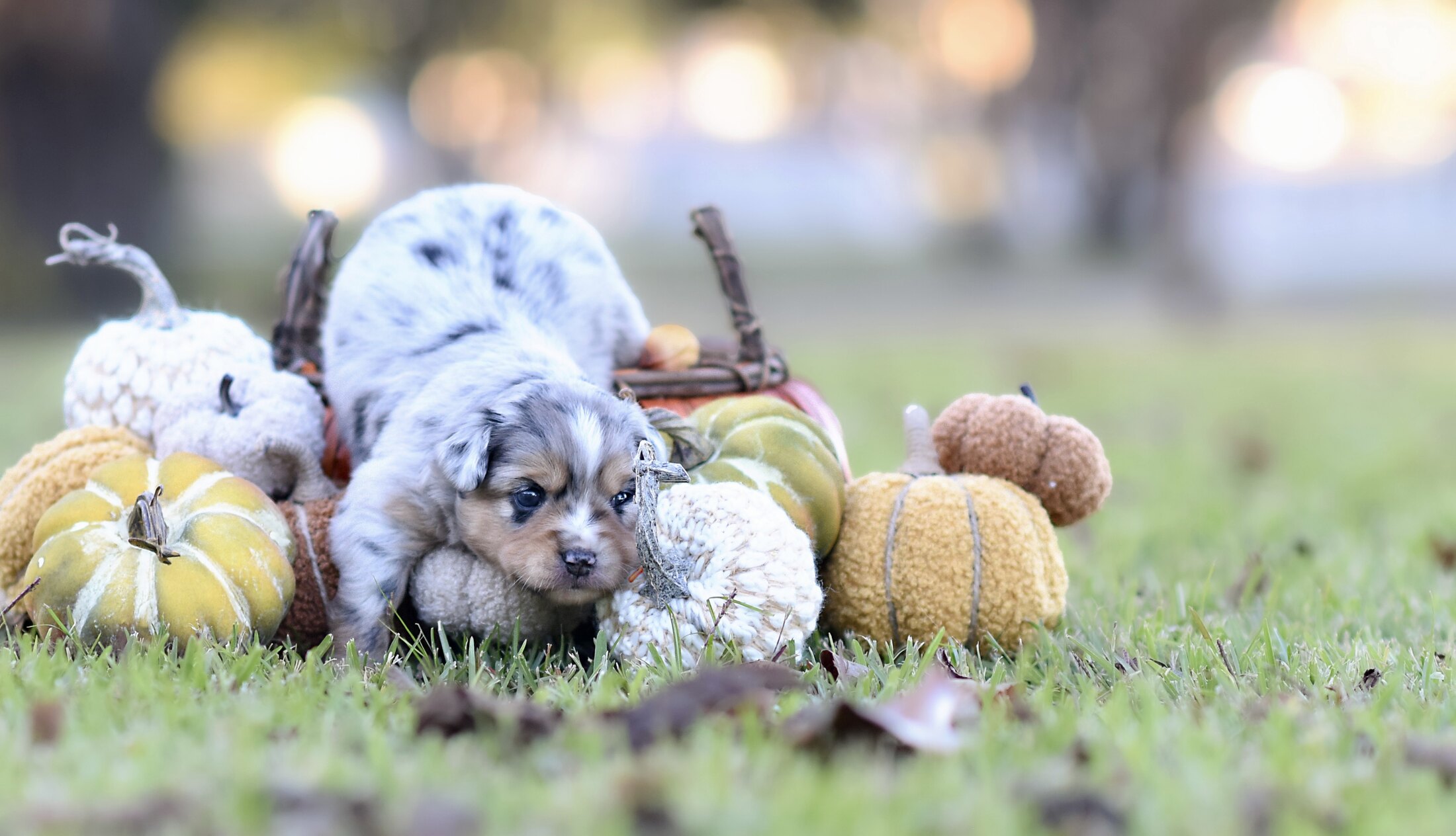 Currently, Gala is on the timid side. The world can feel a little big to her right now, and she lacks natural confidence. She isn't necessarily scared, but she looks to her humans to support her and help her along in new situations. When she feels secure in your arms, she handles commotion surprisingly well—even observing a noisy Christmas parade with contentment!